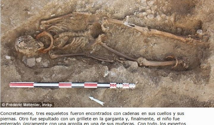 Ομάδα αρχαιολόγων έφερε στο φως αυτήν την εβδομάδα αρκετούς ρωμαϊκούς τάφους που βρίσκονται στο Σαιντ της νότιο δυτικής Γαλλίας, στους οποίους εντοπίστηκαν πέντε σκελετοί που ήταν αλυσοδεμένοι στο λαιμό και στους αστραγάλους.