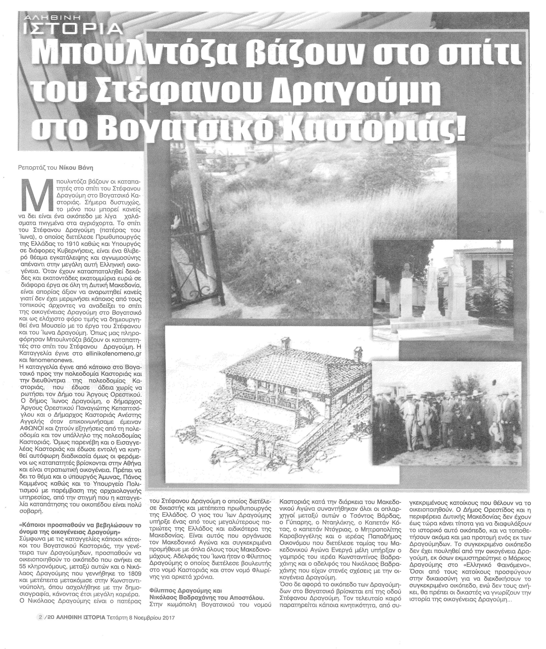 ΕΛΕΥΘΕΡΗ ΩΡΑ Μπουλντόζα βάζουν οι καταπατητές στο σπίτι του Στέφανου Δραγούμη στο Βογατσικό Καστοριάς ..