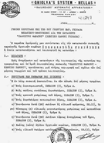 1] Το πρώτο ήταν μια αντιπυρηνική ομπρέλα και το δεύτερο ένα σύστημα τηλεκατεύθυνσης οχημάτων πυραύλων, ΣΗΜΕΡΑ Που βρίσκονται η εφεύρεσης οι τεχνολογικές πατέντες τηλεκατεύθυνσης οχημάτων πυραύλων του Γεώργιου Γκιόλβα που ήταν στο η συγκεκριμένη πατέντα του 1955 Κέντρο Ερευνών Εθνικής Αμύνης (ΚΕΕΘΑ)!!!