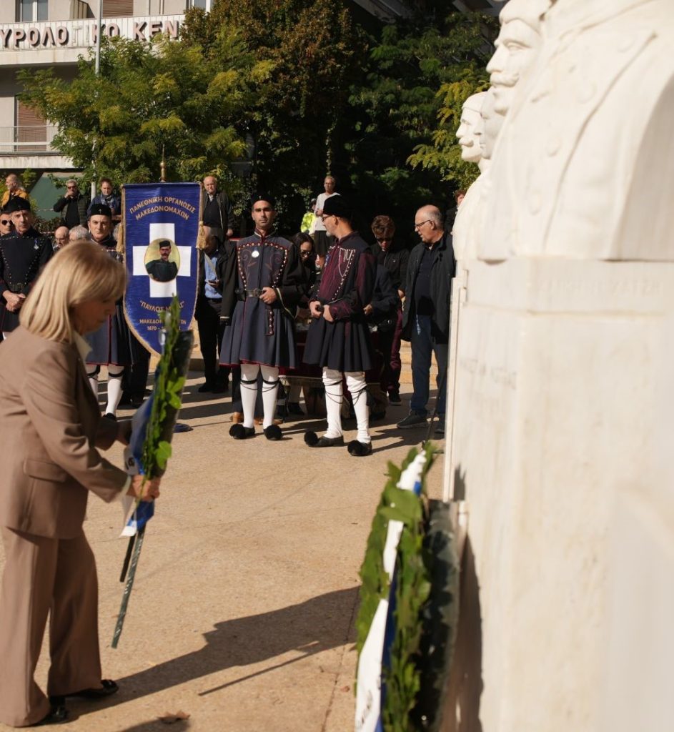 Στην κεντρική ομιλία της η Περιφερειάρχης Κεντρικής Μακεδονίας επεσήμανε ότι η Ημέρα του Μακεδονικού Αγώνα είναι “ένα προσκύνημα, μέσα από το οποίο αφενός τιμούμε τους ήρωες που αγωνίστηκαν και θυσιάστηκαν για την ελευθερία και την ελληνικότητα της Μακεδονίας μας, αφετέρου αναλογιζόμαστε το χρέος που έχουμε επωμιστεί όλοι οι σύγχρονοι Μακεδόνες απέναντι στη δική τους θυσία και στην κληρονομιά που μας άφησαν”.