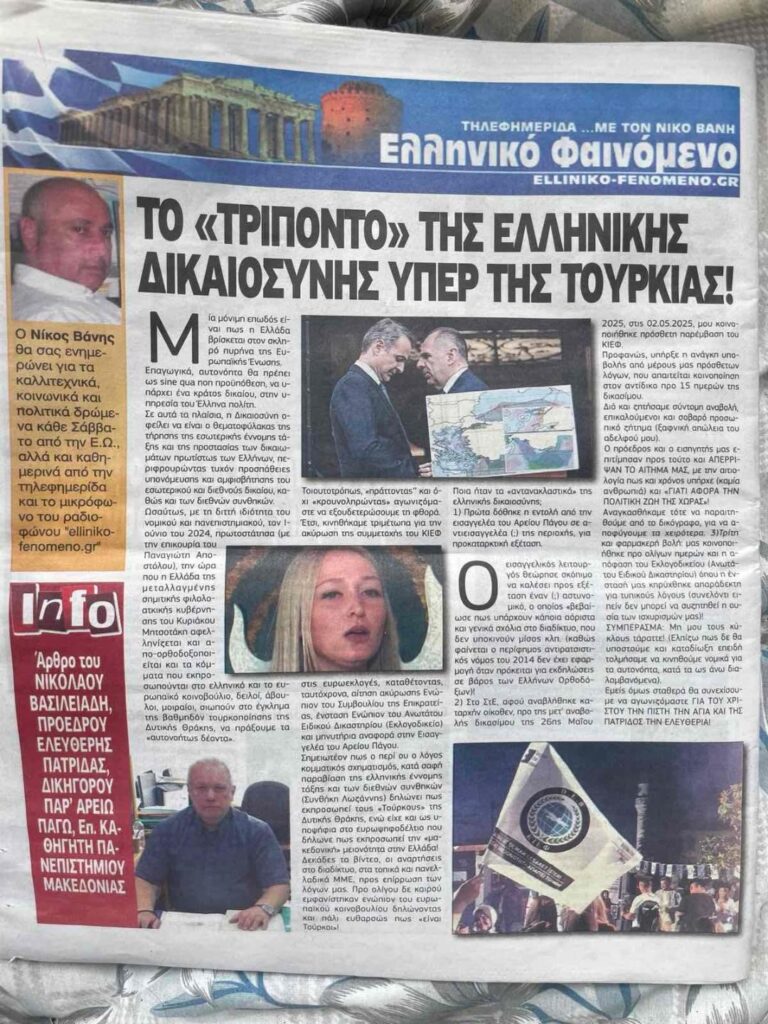Το Άρθρο του – ΝΙΚΟΛΑΟΥ ΒΑΣΙΛΕΙΑΔΗ –ΠΡΟΕΔΡΟΥ ΕΛΕΥΘΕΡΗΣ ΠΑΤΡΙΔΑΣ ΔΙΚΗΓΟΡΟΥ ΠΑΡ’ ΑΡΕΙΩ ΠΑΓΩ- Επ. ΚΑΘΗΓΗΤΗ ΠΑΝΕΠΙΣΤΗΜΙΟΥ ΜΑΚΕΔΟΝΙΑΣ.