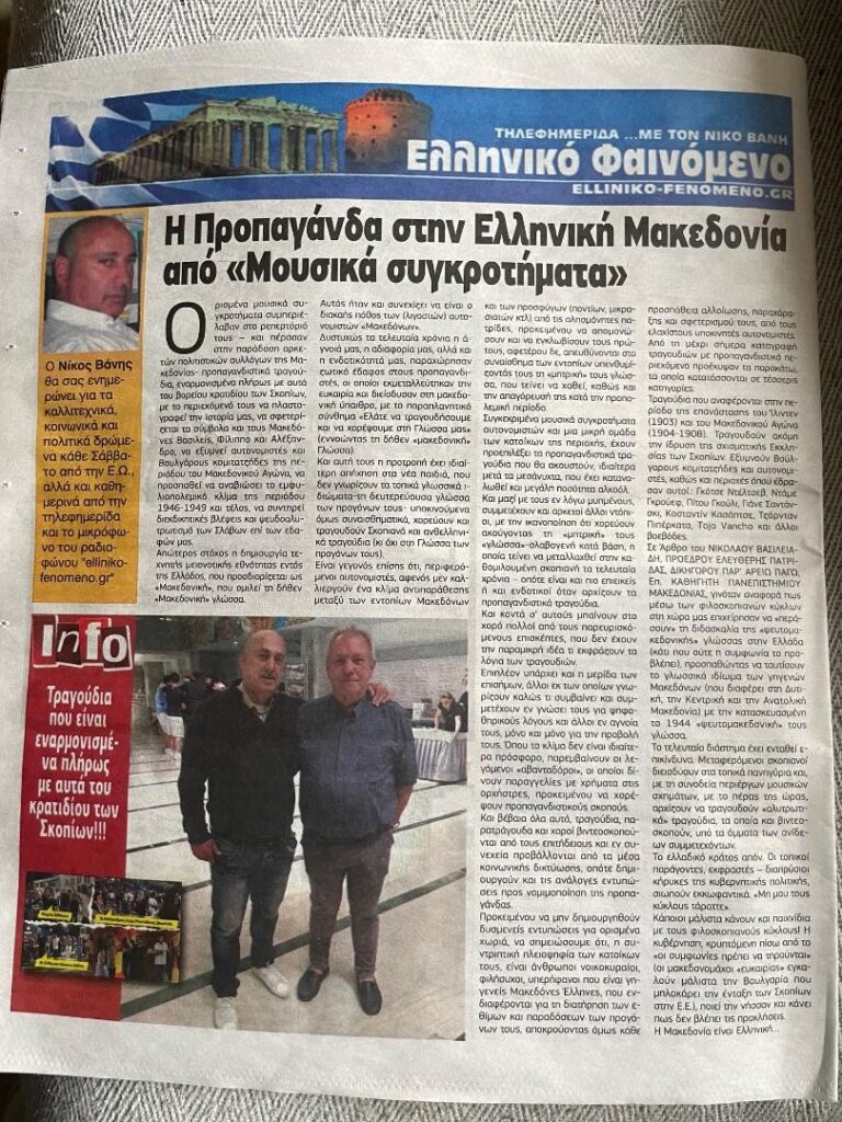 Οπισθόφυλλο και πρωτοσέλιδο στην εφημερίδας Ελεύθερη Ώρα και του Ελληνικό Φαινόμενο. elliniko-fenomeno.gr-17-1-2026-Η Προπαγάνδα την Ελληνική Μακεδονία από «Μουσικά—- Συγκροτήματα»-με τραγούδια που είναι Εναρμονισμένα πλήρως με αυτά του βορείου κρατιδίου των Σκοπίων!!!