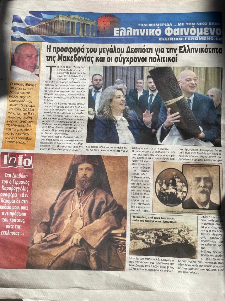 Οπισθόφυλλο και πρωτοσέλιδο στην εφημερίδας Ελεύθερη Ώρα και του Ελληνικό Φαινόμενο. elliniko-fenomeno.gr-21-2-2026-Είναι δυνατόν ο Νίκος Δένδιας ΝΑ βρίσκεται στην καστόρια για Τα «Καραβαγγέλεια» και να μη Αναφέρει για Τον πολιτικό Στέφανο Δραγούμη, και τον Πρωθυπουργό της χώρας το 1910,Τον Σημαίνοντα διοργανωτή του Μακεδονικού Αγώνα.
