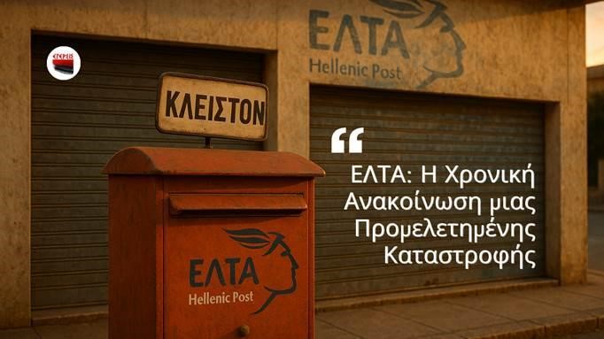 Το πρόσφατο σχέδιο πώλησης των ΕΛΤΑ και το κλείσιμο 204 καταστημάτων αποτελεί την αναμενόμενη κατάληξη μιας μακρόχρονης στρατηγικής εγκατάλειψης και συστηματικής υπονόμευσης. Δεν πρόκειται για αναπόφευκτη εξέλιξη, αλλά για προμελετημένο αποτέλεσμα πολιτικών επιλογών που οδήγησαν έναν εθνικό οργανισμό στη διάλυση.