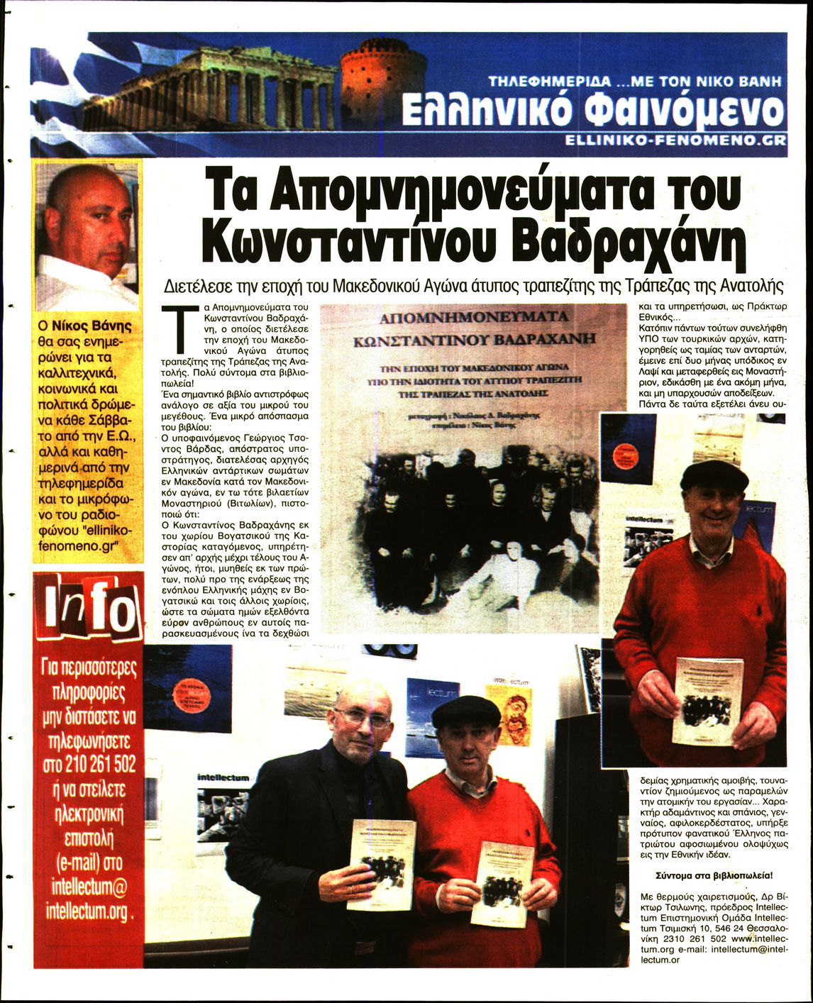 Τα Απομνημονεύματα του Κωνσταντίνου Βαδραχάνη, ο οποίος διετέλεσε την εποχή του Μακεδονικού Αγώνα άτυπος τραπεζίτης της Τράπεζας της Ανατολής-Ένα σημαντικό βιβλίο..