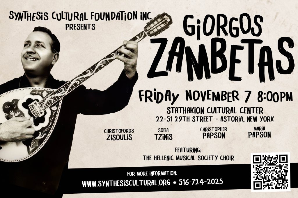 Το Πολιτιστικό Ίδρυμα “Σύνθεσις” σας προσκαλεί σε ένα ξεχωριστό μουσικό αφιέρωμα στον αξεπέραστο Γιώργο Ζαμπέτα, τον μεγάλο συνθέτη που σφράγισε με το μπουζούκι και το χαμόγελό του ολόκληρες γενιές.